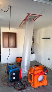 Upon arrival, our certified water damage technicians used advanced thermal imaging cameras to locate the exact path of the water. These tools allow us to detect moisture that is hidden behind walls and ceilings, ensuring that every affected area is identified before remediation begins. Once we pinpointed the source, we coordinated a plan to repair the shower leak and restore the garage drywall safely.